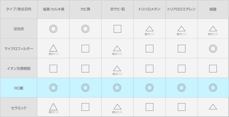 このRO膜を使うことにより、水の味を損なう塩素や臭素、健康に悪影響があると言われている