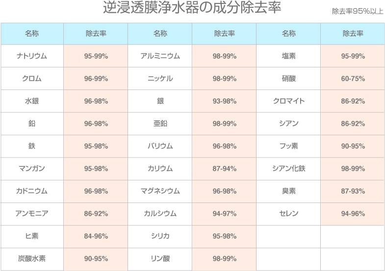 トリハロメタンやダイオキシンといったハイテク汚染物質もほぼ完全にRO膜によって除去します。